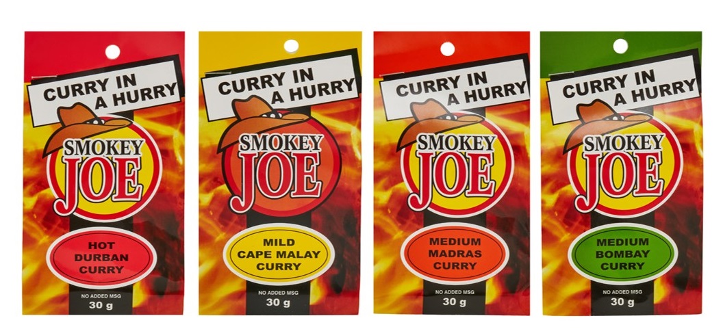 CAPE MALAY, MEDIUM BOMBAY, MEDIUM MADRAS, HOT DURBAN